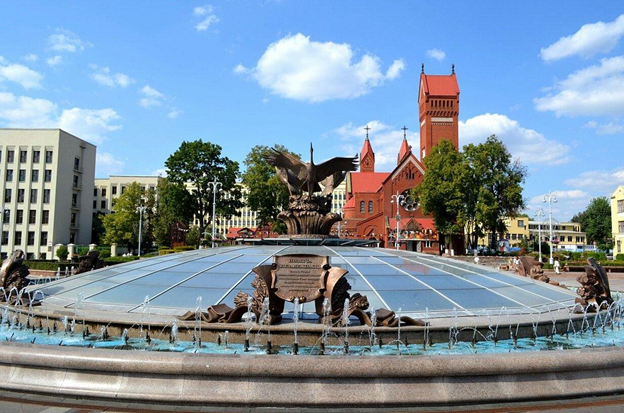 Trg neovisnosti i katolička crkva svetih Šimuna i Helene u Minsku